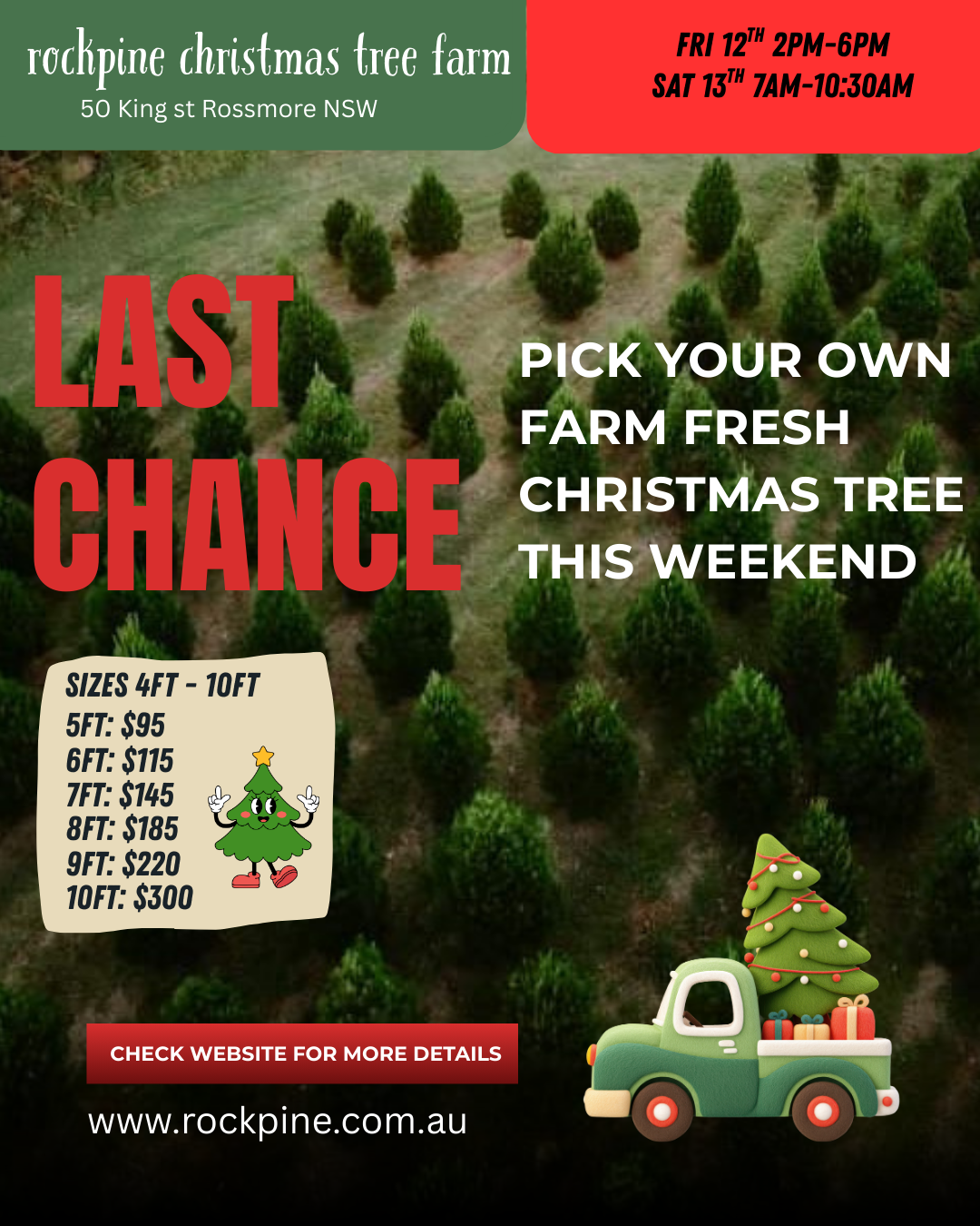 Get a bargain this wekend as we are selling straight from our paddock, you pick your tree and we'll cut it down for you. While stocks last.